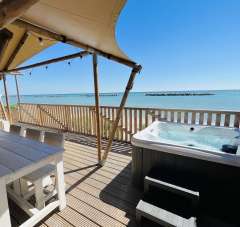 RIVIERA ADRIATICA - Moderno e lussuoso Resort/Glamping su area in PROPRIETA´ PRIVATA di oltre due ettari completamente recintata, situato direttamente sulla spiaggia con 55 eleganti strutture con 283 posti letto totali immerse in un verdeggiante giardino e dotate di tutti i comfort: servizi igienici completi, cucina attrezzata con frigorifero, congelatore e lavastoviglie, aria condizionata, un´ampia veranda con zona pranzo e salotto con vista sul mare, vasche idromassaggio. Il Villaggio dispone di Reception, Magazzini, appartamento privato, negozio di articoli per il mare ed abbigliamento, una piscina riscaldata con getti massaggianti, cascata, solarium con lussuosi lettini anche a baldacchino, un beachbar con area salotto, un accogliente giardino con posti a sedere, un Ristorante con bar sulla spiaggia, un campo da calcio, tavolo da ping pong, parco giochi e due punti ricarica per auto elettriche. Spiaggia libera frequentata solo ed esclusivamente dai clienti del Resort. Posti auto interni. Rif. 6884 DiLeoImmobiliare