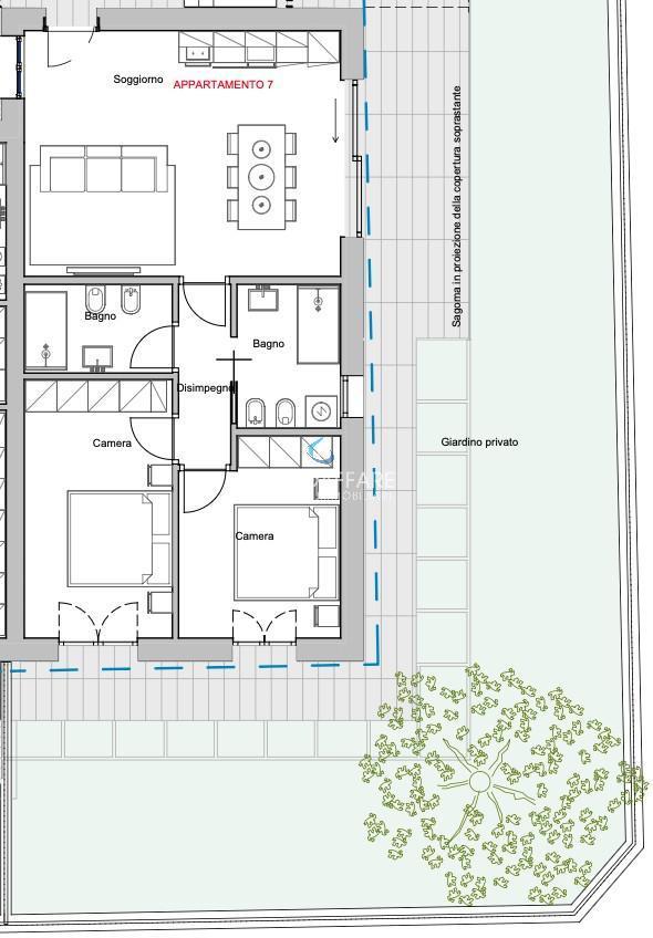 L´ appartamento proposto è un Trilocale con loggia e giardino privato. L´appartamento è composto da soggiorno con cucina a vista, disimpegno, due bagni , due camere . La zona giorno si completa con una loggia di 15,53 mq. Possibilità di scegliere una garage singolo\doppio ad un prezzo extra.