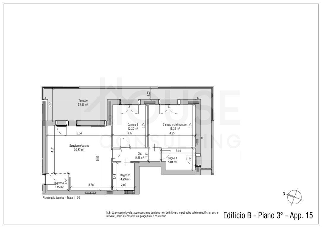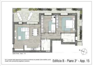 Appartamento al secondo piano di tre locali con doppi servizi 99 mq terrazzo coperto di 35 mq.