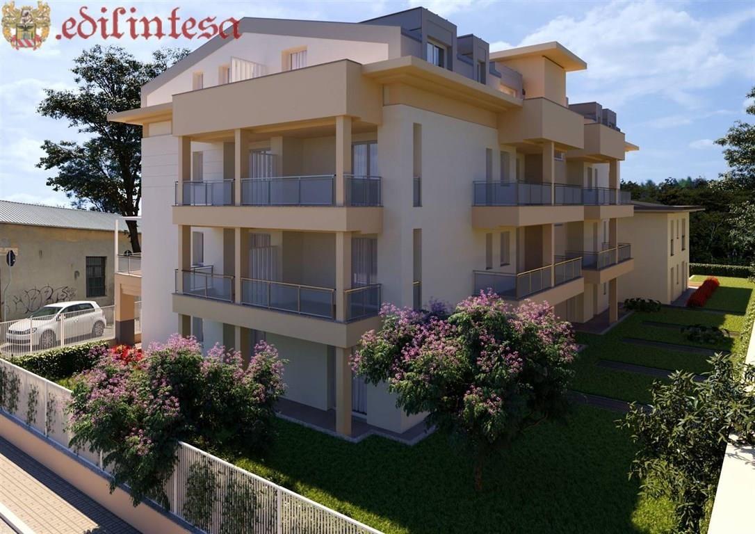 In splendida minipalazzina raffinata di poche unita´ abitative in classe energetica A abbiamo uno splendido trilocale con giardinetto ad uso esclusivo antistante l´appartamento con una comodissima zona coperta dove e´ possibile posizionare un tavolo all´aperto e utilissimo per chi ha animali o posizionare i giochi dei bambini . Internamente possiamo ad oggi gestire lo spazio dividendolo come o trilocale o grande bilocale , pertanto troviamo soggiorno con cucina a vista, due camere di cui una matrimoniale con confortevole armadio , bagno ampio e nicchia per lavanderia e sgabuzzino . Possibilta´ di scelta capitolato ampia e di qualita´ . Possibilira´ anche di essere seguiti per la personalizzazione inteerna da design.