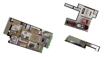 Le cinque unità a piano terra hanno un ingresso attraverso il giardino privato, grande portico e vetrate che aprono sulla zona giorno con soggiorno separato dalla cucina abitabile. La zona notte prevede una master-room con cabina armadio e bagno dedicato, altre due camere da letto, ulteriore bagno/lavanderia di supporto.