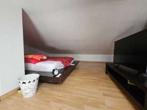 L´immobile è così composto: soggiorno con cucina open space, camera da letto matrimoniale, cameretta, bagno finestrato, due balconi, di cui uno attrezzato con barbecue e lavabo e mansardina.