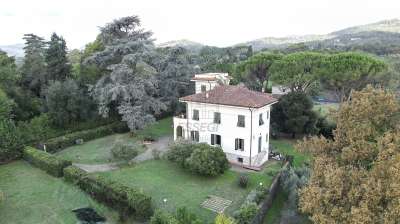 Caratterizzata dalla imponente torretta panoramica, questa elegante villa in stile Liberty risalente ai primi del ´900, è situata sulle colline di Lucca in una zona esclusivamente residenziale e immersa nella natura e a pochi chilometri dal centro storico di Lucca .Circondata da un ampio giardino di mq.7.000 interamente recintato che garantisce privacy e tranquillità e sul quale si può costruire una piscina. La villa è ideale per chi cerca comodità e prestigio. Sviluppata su tre piani residenziali fuori terra, ha un classico disegno di periodo che culmina con la torretta panoramica. L’ingresso principale al piano rialzato, conduce a uno studio di rappresentanza e a un grande atrio che apre su un salone doppio con camino, ideale come zona living o pranzo. Un salottino separato accompagna alla spaziosa cucina abitabile e a un bagno di servizio. Al piano superiore, la zona notte comprende quattro camere matrimoniali: una con bagno en-suite, una con suite privata e due servite da due eleganti bagni. Una scala interna porta alla soffitta, attualmente adibita a ripostiglio. Una bellissima terrazza sulla caratteristica torretta, permette di ammirare il paesaggio circostante e le torri della Città di Lucca. Il piano terra di ottima altezza e finestrato, ospita un appartamento indipendente, collegato internamente e composto da soggiorno, cucina, due camere e zona cantina — perfetto per ospiti o come unità separata. La villa, caratterizzata da finiture d´epoca attualmente non è abitata ,e necessita di ordinaria manutenzione per poter essere vissuta, la precedente ristrutturazione risale agli anni 90 con rifacimento impianti e bagni.