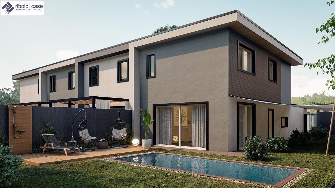 In Comune di Meda, sul confine con Seregno, in zona residenziale in contesto IMMERSO NEL VERDE, proponiamo in vendita SPLENDIDA VILLA A SCHIERA DI TESTA DI NUOVA COSTRUZIONE CERTIFICATA IN CLASSE ENERGETICA A3. La soluzione è così composta: PIANO TERRA con ingresso, spaziosa zona giorno con AMPIE VETRATE e servizio; scala interna che conduce al PIANO PRIMO composto da camera matrimoniale con CABINA RMADIO e BAGNO ENSUITE, due camerette e TERZO BAGNO. Possibilità di modifiche interne nella disposizione dei locali. GIARDINO PRIVATO CON POSSIBILITA´ DI CREARE PISCINA. POSSIBILITA´ BOX DOPPIO IN LARGHEZZA. 445.000. RIF. C.141 (1) Classe Energetica: A3 - IPE: 0.00kWh/mq anno