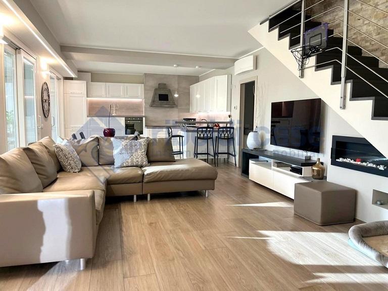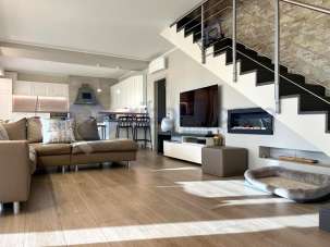 Nel cuore di Giussano, in zona strategica comoda con tutti i servizi, proponiamo in RECENTE MINI PALAZZINA uno SPLENDIDO ed ESCLUSIVO ATTICO DI QUATTRO LOCALI (ca. mq 160) completo di ARREDO elegante ed unico nel suo genere !! L´immobile si contraddistingue per il gusto raffinato e ricercato delle sue finiture con materiali di pregio, la cura al dettaglio per ogni singolo ambiente lo rendono un´autentica opera di design e comfort. La soluzione è disposta su due livelli abitativi così composti: PIANO SECONDO ingresso su spaziosa e luminosa zona giorno open space dove troviamo una bellissima cucina attrezzata con penisola, la zona living con zona pranzo e zona relax finemente arredate, disimpegno, una comoda camera da letto, bagno ed AMPIO TERRAZZO con PERGOLA a lamelle retrattili sfruttabile in qualsiasi periodo dell´anno; la parete della scala che conduce al piano superiore è rifinita in pregiata quarzite beige scozzese ed i gradini rifiniti in granito nero assoluto con faretti incorporati sono un autentico tocco di classe; al PIANO MANSARDATO alto con TRAVI A VISTA SBIANCATE si sviluppa la zona notte composta da un´ampia e confortevole camera matrimoniale con CABINA ARMADIO e BAGNO PRIVATO, un´altra spaziosa camera da letto ed il TERZO BAGNO. A completamento della soluzione la CANTINA al piano interrato. Possibilità BOX DOPPIO IN LARGHEZZA. RISCALDAMENTO A PAVIMENTO, IMPIANTO DOMOTICO, ALLARME, ARIA CONDIZIONATA, TAPPARELLE ELETTRICHE, PAVIMENTAZIONE IN GRES PORCELLANATO, MODERNO CAMINO A COMBUSTIONE, PORTE IN LEGNO PREGIATO marca Garofalo. 510.000 (Rif. ATTICO GIUSSANO Q.49) (altre soluzioni su Contatta l´agenzia con il servizio ´´Invia Richiesta´´) Classe Energetica: B - IPE: 0.00kWh/mq anno