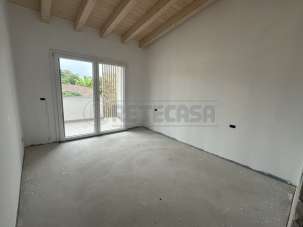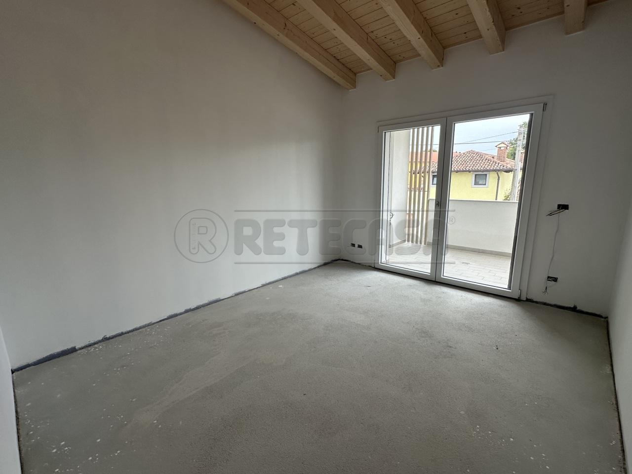 FIUMICELLO-VILLA VICENTINA: Sogni una casa nuova, moderna sotto l´aspetto energetico, ma anche progettuale e la vuoi anche subito? Abbiamo quello che fa per te!! A Fiumicello, proprio a due passi dalla chiesa di San Valentino e dalla Piazza del Municipio, ti proponiamo una villa a schiera ampia e luminosa, con una superficie di circa 185 mq commerciali distribuiti su due livelli, progettata con la massima cura per garantire un ambiente di vita sereno e confortevole. L´ingresso alla villetta, avviene tramite strada privata. La vettura può essere parcheggiata all´interno dell´autorimessa con basculante elettrico oppure lasciata esternamente, all´interno della proprietà. L´accesso pedonale conduce al grande soggiorno di forma regolare, con cucina progettata con isola centrale e uscita sul secondo giardino che offre la privacy necessaria. Al piano terra si trova anche il primo bagno completo e finestrato e un comodo ripostiglio. Il primo piano è progettato per garantire spazi comodi e ben organizzati, infatti non troverai da nessuna parte una casa nuova con tre camere matrimoniali e ben due ripostigli! Dalla matrimoniale si accede alla prima terrazza, leggermente più piccola rispetto a quella a servizio delle altre due camere. Il bagno è ambio e ben organizzato con una doccia spaziosa e moderna. Esternamente la proprietà è completamente recintata, con impianto di irrigazione automatico per mantenere rigoglioso il verde dei giardini. La pompa di calore e l´impiantistica di supporto per il fotovoltaico sono posizionati esternamente, in un vano dedicato, all´interno del quale si trovano anche gli attacchi per la lavatrice e l´asciugatrice. A lato del basculante del garage si trova anche, per chi è già dotato o sta pensando all´acquisto, la predisposizione per la colonnina di ricarica elettrica dell´autovettura. Classe energetica altissima, garantita dal sistema costruttivo Cllimablock della Pontarolo Engineering, con isolamento interno di 6cm, pareti dello spessore di 16cm, ulteriore isolamento esterno di 9cm e sottostante basamento dotato di intercapedine aerata. Il riscaldamento dell´immobile avviene tramite impianto radiante a pavimento con pompa di calore, affiancata ad un impianto fotovoltaico da 6 kW. La costruzione si contraddistingue anche per l´utilizzo di materiali pregiati e di finiture di alta qualità, insomma hai tutto quello di cui hai bisogno! Non aspettare oltre, chiamaci subito per fissare il tuo appuntamento, vivi il sogno della casa perfetta e scopri come il comfort e la tranquillità si fondono in un’esperienza unica! La descrizione dell’immobile, la planimetria riqualificata e le metrature riportate non costituiscono elementi contrattuali ma sono solo indicativi.