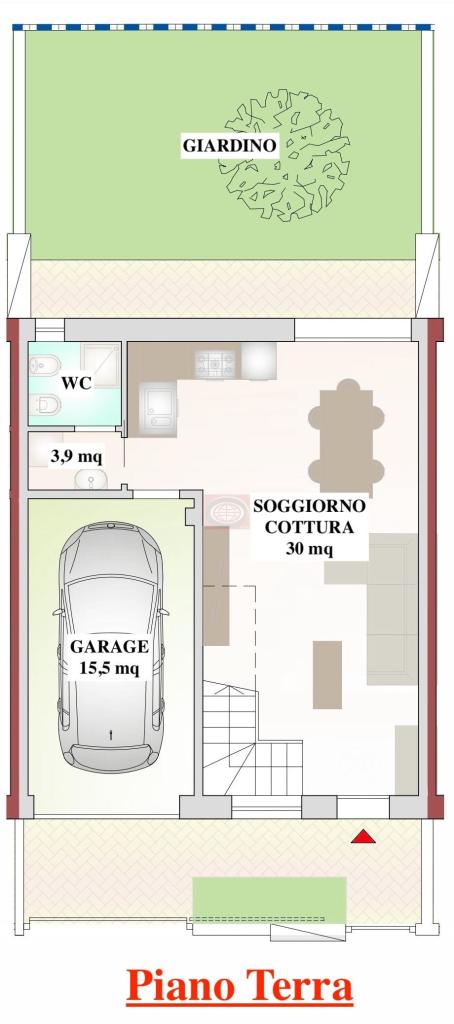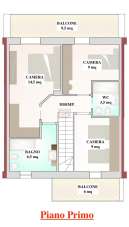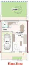 La villetta è disposta su due livelli così suddivisi:PIANO TERRA ingresso su soggiorno con angolo cottura (mq 29,50), antibagno-bagno, giardino privato di mq 50 garage e posto auto; PIANO PRIMO disimpegno, tre camere da letto, due bagni, due balconi.