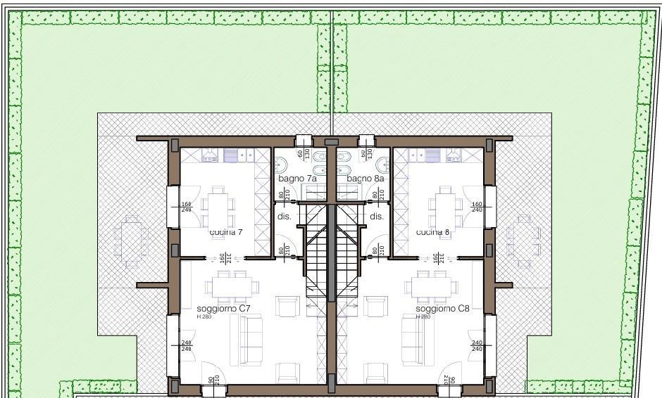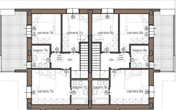 Spazi esterni: terrazzi/balconi da 25–30 m² + giardini privati da 100–150 m²