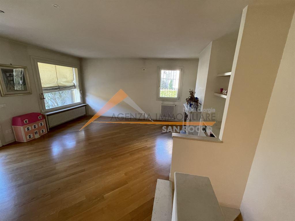Sogni una casa che unisce il calore di un camino scoppiettante al comfort moderno? Ti presentiamo una splendida villetta d´angolo, inserita in un contesto residenziale di grande pregio, pronta per accoglierti. Il piano terra ti accoglie con un luminosissimo soggiorno, il cuore della casa, dove una magnifica vetrata inonda lo spazio di luce naturale, creando un´atmosfera unica. Qui, un affascinante camino è pronto a scaldare le tue serate invernali. La vista si apre su una piccola corte privata e pavimentata, attrezzata con piante e un sistema di irrigazione. La cucina, separata, è un ambiente funzionale e ben organizzato.Salendo al 1° piano, troverai la zona notte, composta da una spaziosa camera matr. e una singola, con affaccio su un balcone. Il bagno finestrato offre tutti i comfort necessari. Ma le sorprese non finiscono qui. L´immobile vanta una mansarda, uno spazio versatile che può diventare una terza camera da letto, uno studio o un´area hobby, completa di un secondo bagno con velux. La praticità è garantita dal garage doppio di ben 38 mq, situato al piano seminterrato. Le rifiniture di alta qualità e una dotazione tecnologica completa rendono questa casa un vero gioiello: riscaldamento autonomo, aria condizionata e sistema di allarme per la tua sicurezza e serenità.Questa villetta è un´occasione imperdibile per chi cerca una soluzione abitativa raffinata, funzionale e subito disponibile..